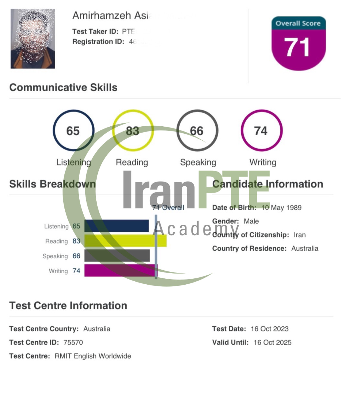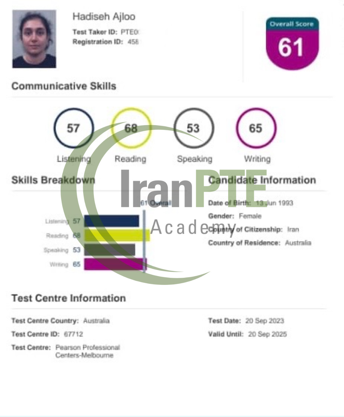 « من فقط یه ماه کلاس حضوری با ایران PTE داشتم، ولی همین یه ماه برام کافی بود تا نمره دلخواهم رو بگیرم.